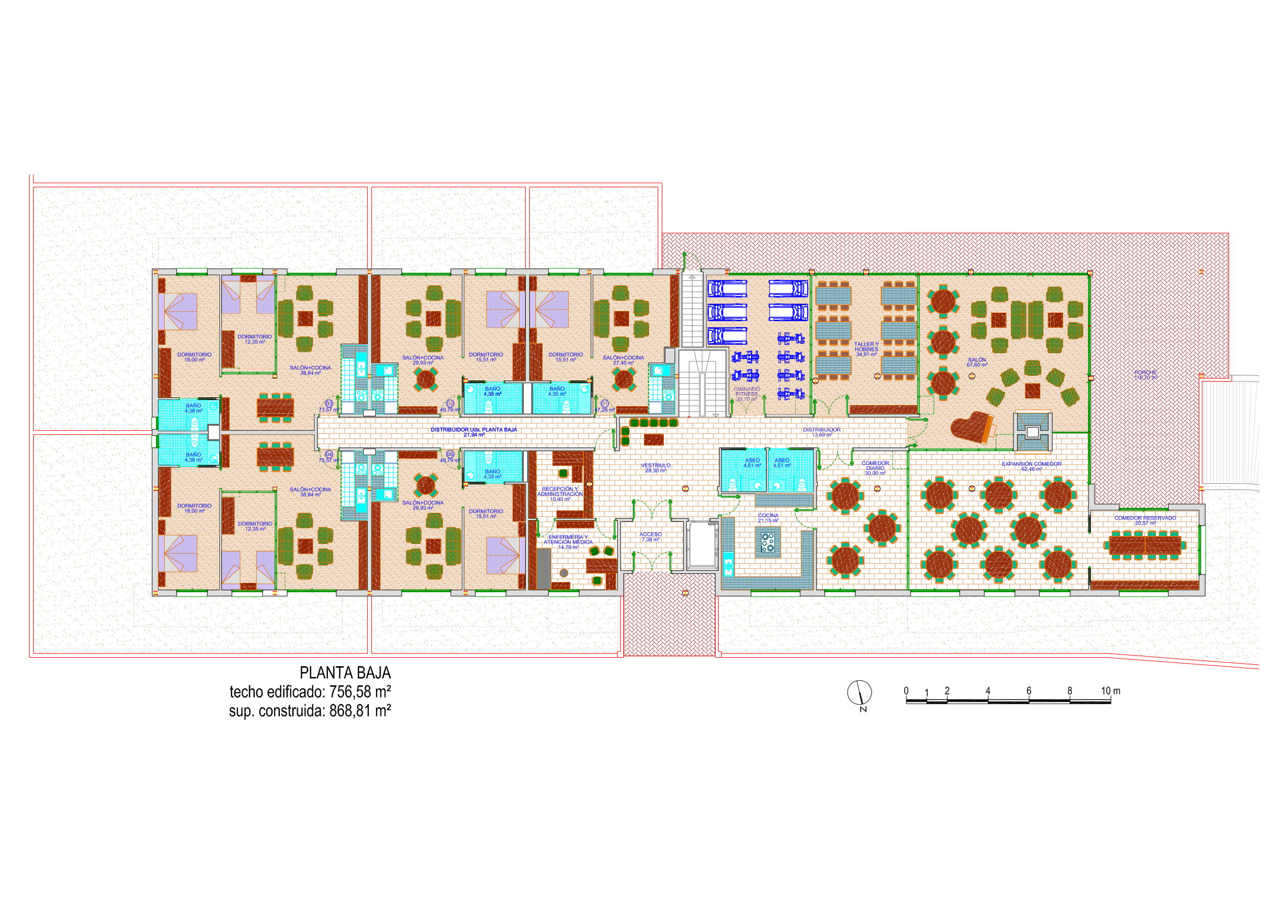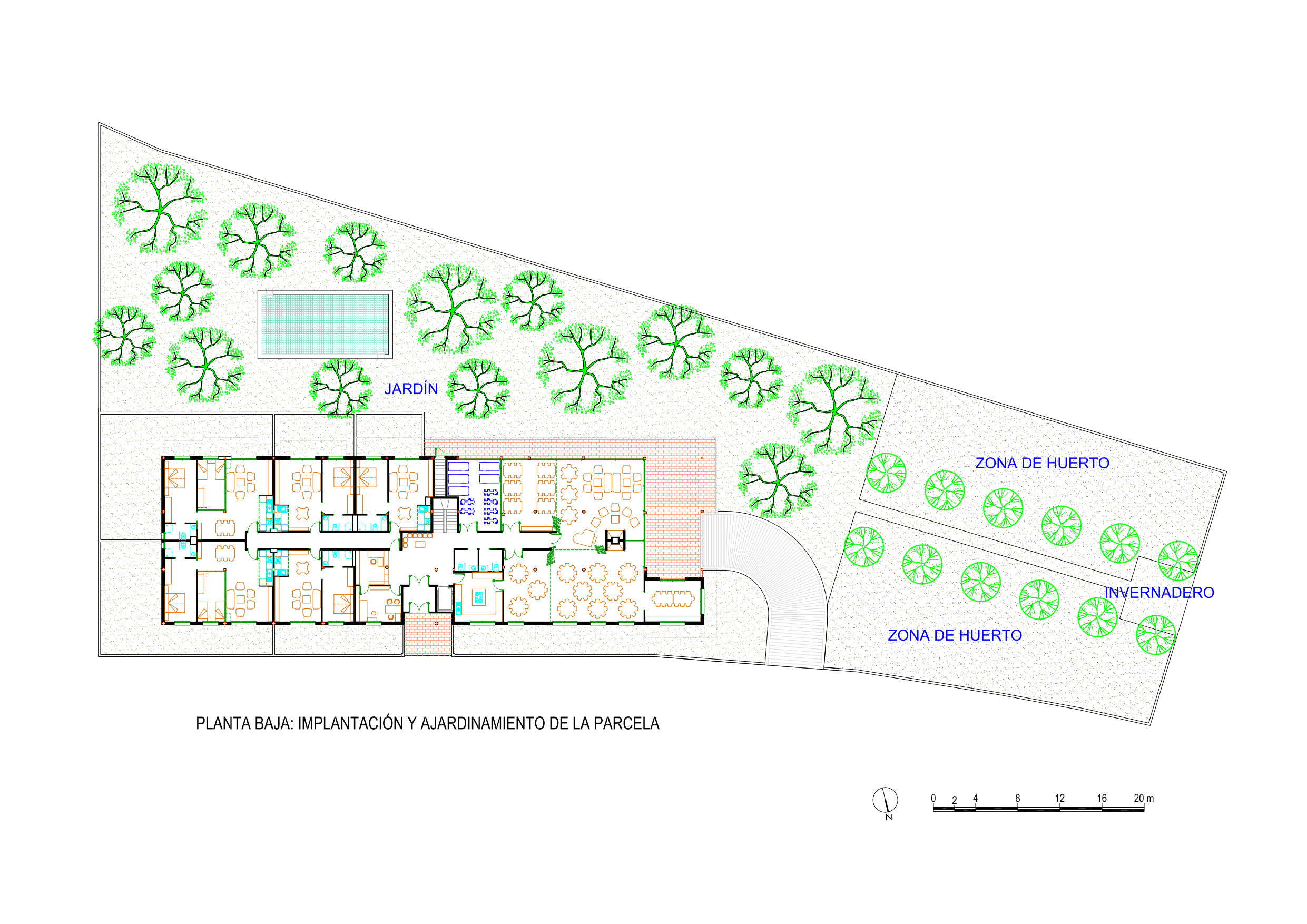It is a new building concept as an alternative choice of living to traditional residences, with wide common areas, gardens, orchard, etc. in the approximately 3.000 m² of outside area of the property. Its goal is to ease a healthy and active cohabitation for their users, to encourage an environment of cooperation and friendship, in order to prevent isolationism and loneliness. The designed building has twenty-five independent apartments, each one with terraces or own garden, living-room, bedroom, bathroom and own kitchen, that consist in one-bedroom apartments (aprox. 50 m²) and two-bedroom apartments (aprox. 75 m²); with more than 500 m² indoor common areas (living-rooms, dining-rooms, kitchen, gym, etc.), indoor garage for 28 vehicles and a great outside area. The building is also able to fit also for the development of different and optional activities for users, such as periodical health attention, halls for events, kitchen or catering services, laundry, cleaning, etc.