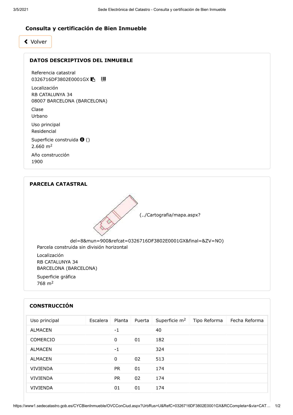 • Superficie construida . 2.660 m², según catastro .