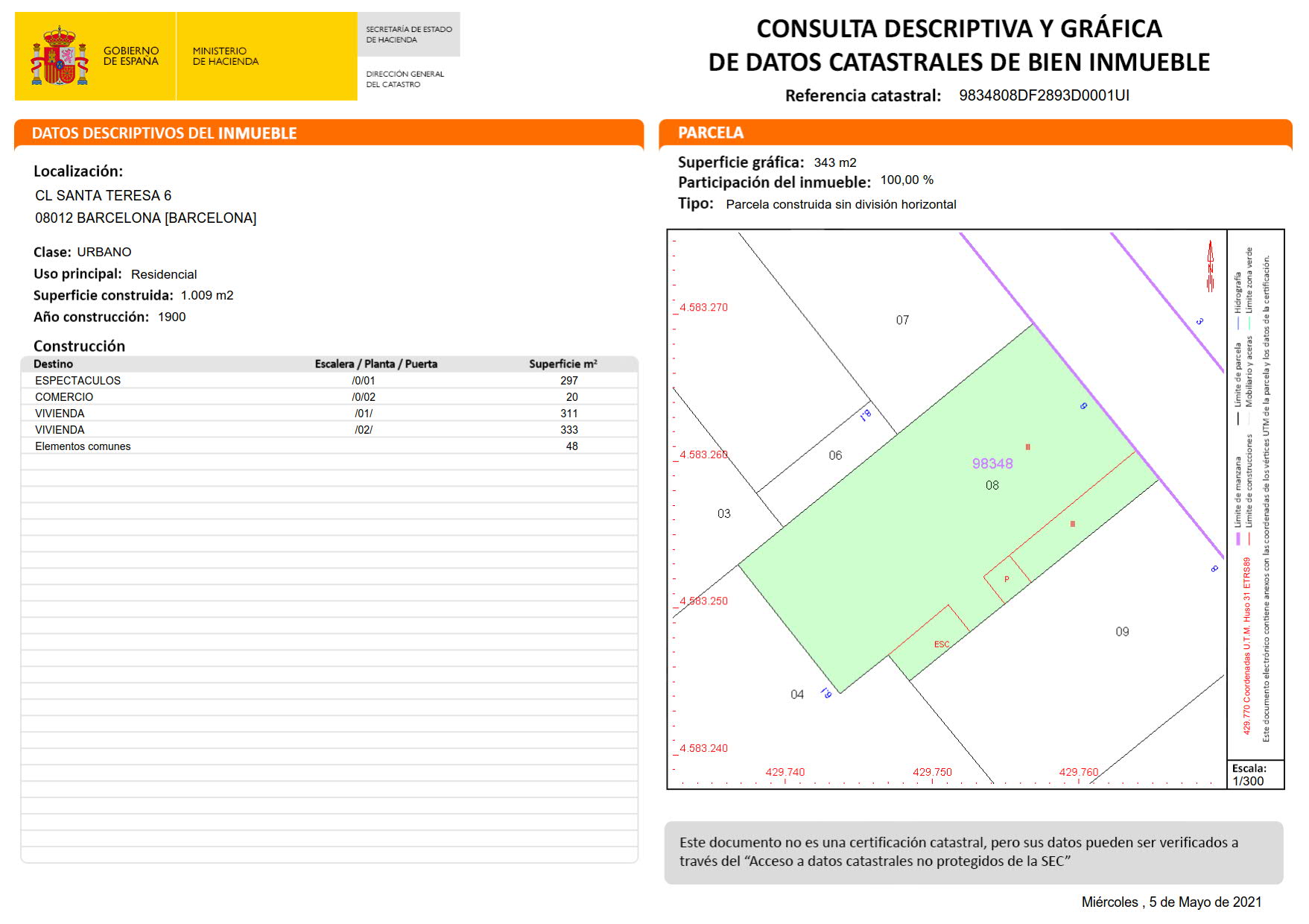 Edificio modernista en la calle Santa Teresa 6 convertido en estudio profesional y vivienda. Se distribuye en tres plantas. Los techos son altos, con ambientes luminosos y diáfanos.