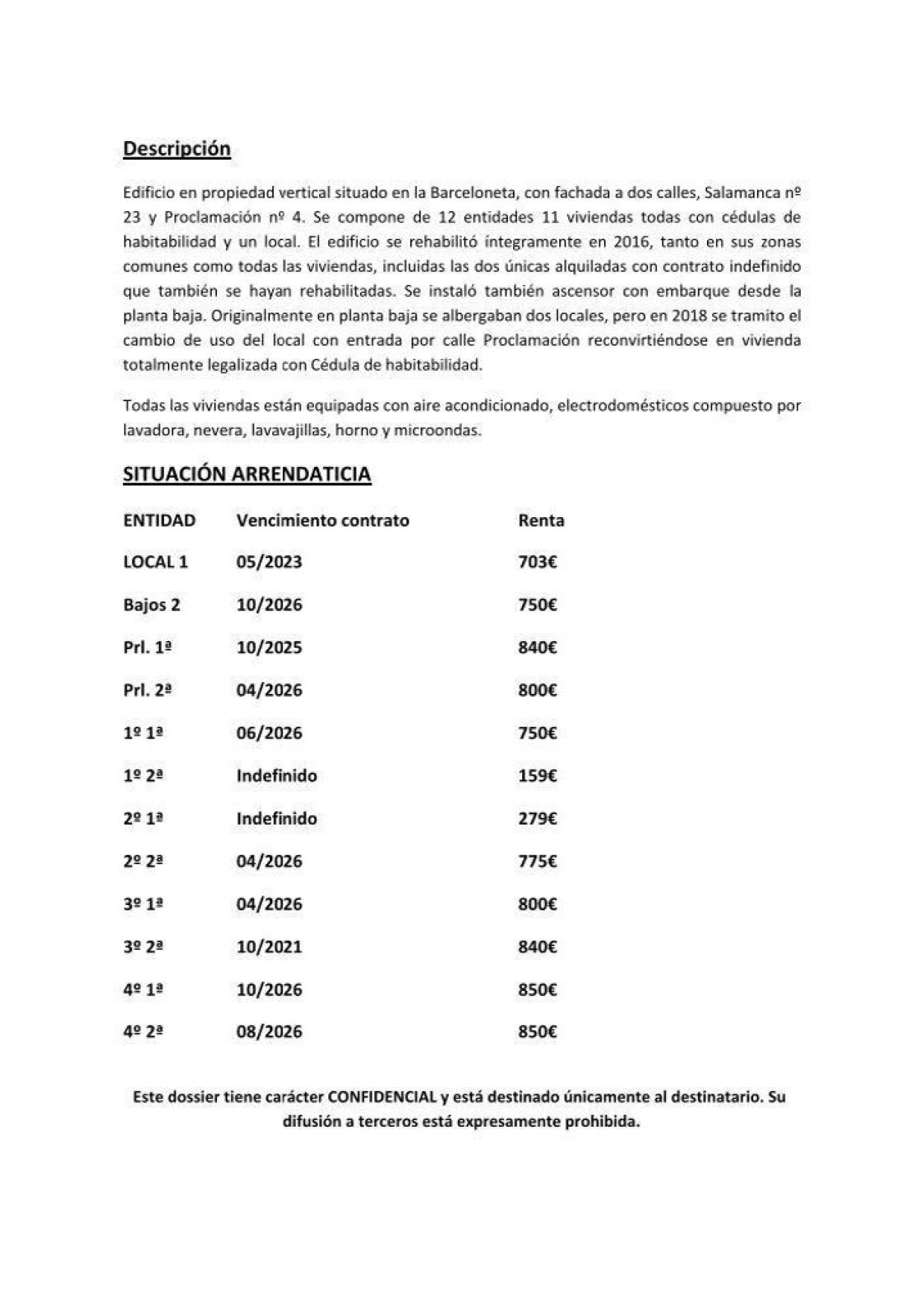 El edificio se reabilitó íntegramente en 2016, tanto en zonas comunes como en todas las viviendas. Se instaló ascensor con embarque desde la planta baja. Todas las viviendas están equipadas con aire acondicionado y eléctrodomésticos .